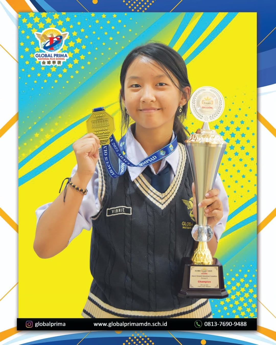20 Juli Selamat dan sukses atas prestasi gemilang Vinnie grup E pemenang Juara Champion di ajang internasional, AIAMA Abacus Olympiad International Competition & Forum 2025 yang diikuti 13 negara meliputi Indonesia, Malaysia, India, Sri Lanka, Korea Selatan, Taiwan, Jepang, Kamboja, Panama, China, Irak, Libanon dan Afrika Selatan di Selangor-Malaysia 20 Juli 2025 Read More